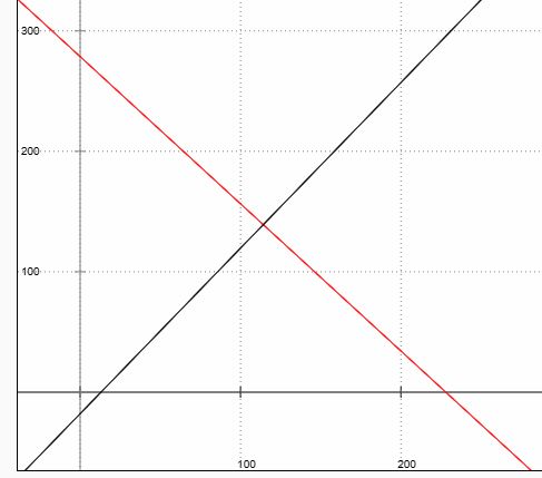 Antwort: Die Züge treffen sich gegen 9.54 Uhr (114 min von 8.00 Uhr) in einer Entfernung von 139 km von Westerland.