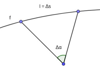 Die Krümmung K ist definiert als das Verhältnis von Winkeländerung Δ α zu Bogenlänge l = Δ s: K = \(lim \frac{\Delta\alpha}{\Delta s}\).