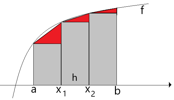 Dieses Verfahren beruht auf dem Einbeschreiben von Rechtecken gleicher Breite in die dem Integral zugeordnete Fläche. Dabei ist die Lage der den Rechtecken zugeordneten Stützpunkte auf dem Funktionsgraphen im Prinzip beliebig: meist befinden sie sich links, rechts oder sind mittig angeordnet.