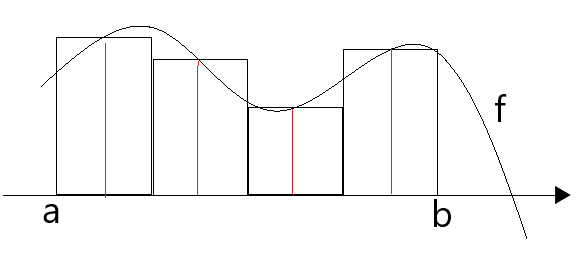 Im Bild sind vier Rechtecke mittig im Intervall [a,b] einbeschrieben.