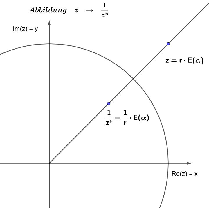 2.3.1. Spiegelung am Einheitskreis w = \(\large \frac{1}{z^{*}}\)