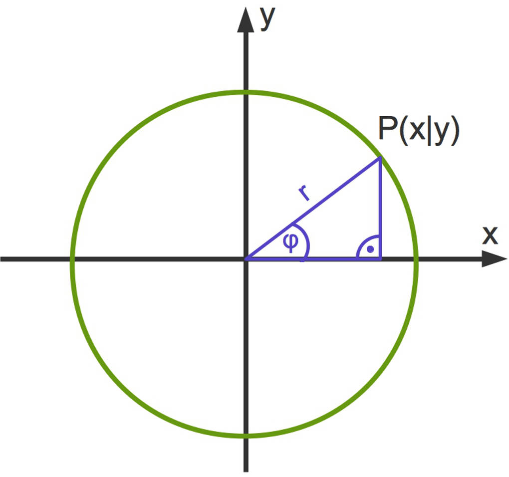 Diese Gleichung beschreibt den Einheitskreis, also den Kreis mit dem Ursprung als Mittelpunkt und dem Radius r = 1.