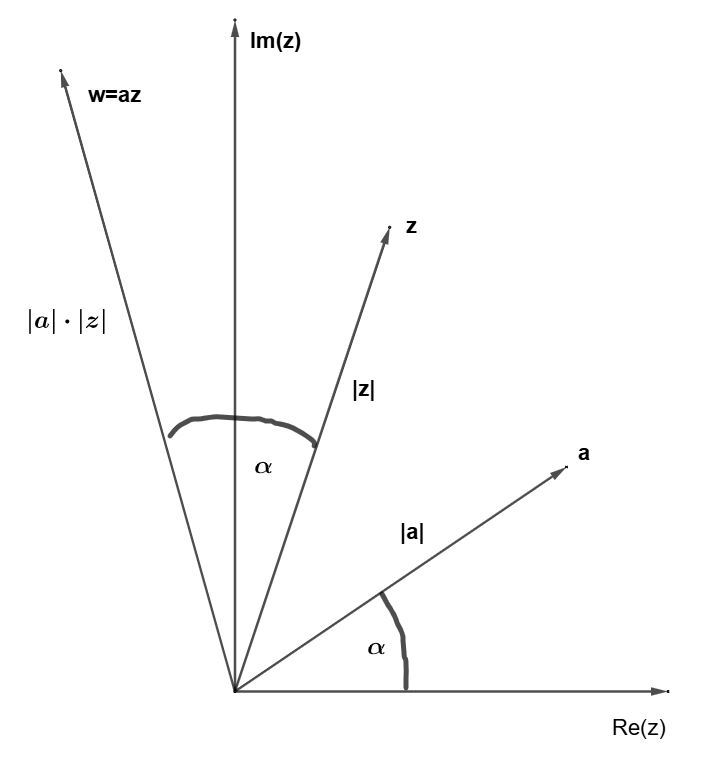 Fasst man die komplexen Zahlen als Vektoren in der Zahlenebene auf, erhält man den Bildvektor w